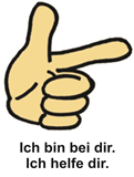 Mit dieser Geste bietest du einem anderen Kind deine Hilfe an. Du sagst damit: „Frag mich – ich helfe dir! Ich stehe dir mit Rat und Tat zur Seite.“ Zu zweit gelingt vieles leichter!